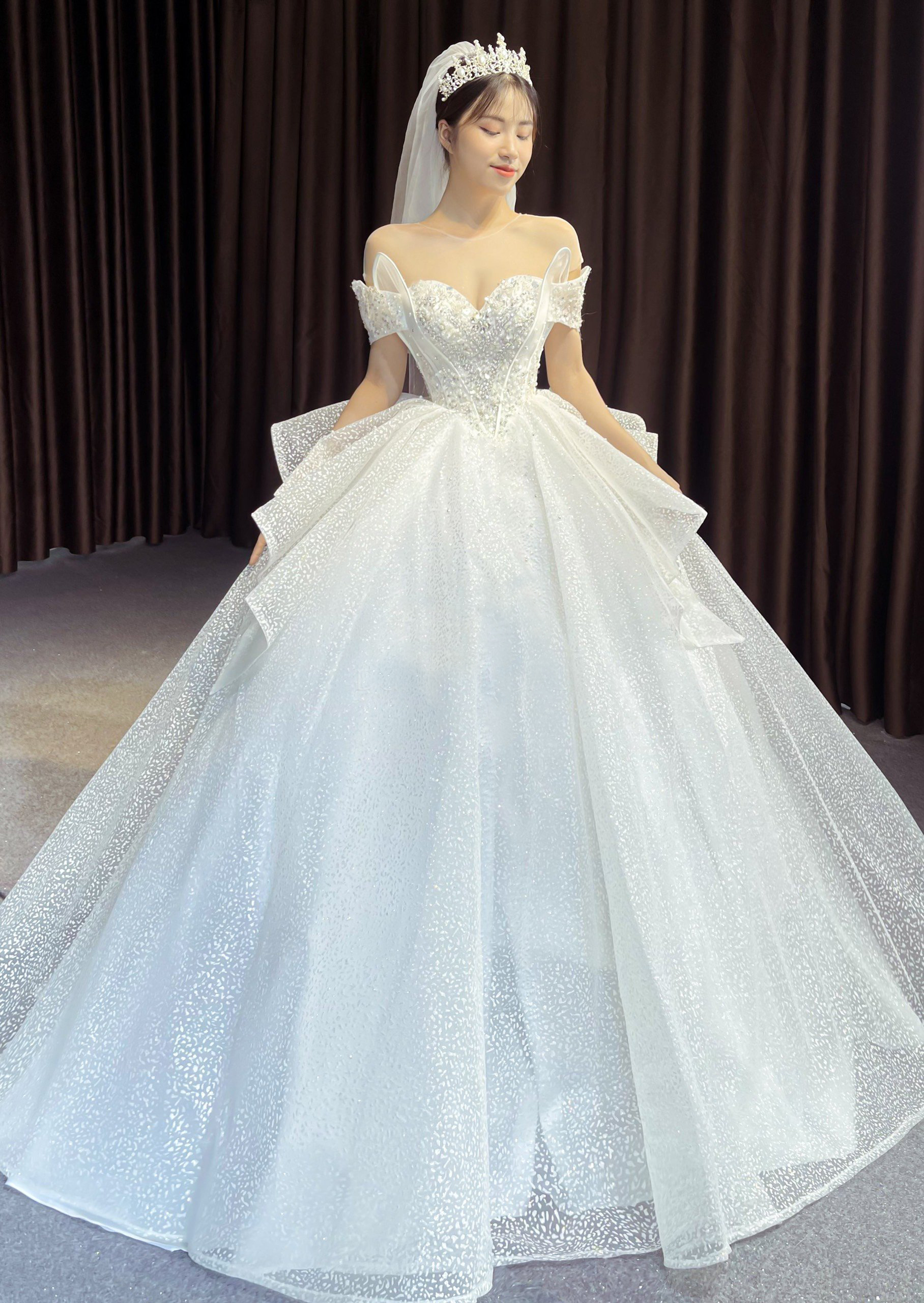 Áo cưới trắng trễ vai quyến rũ