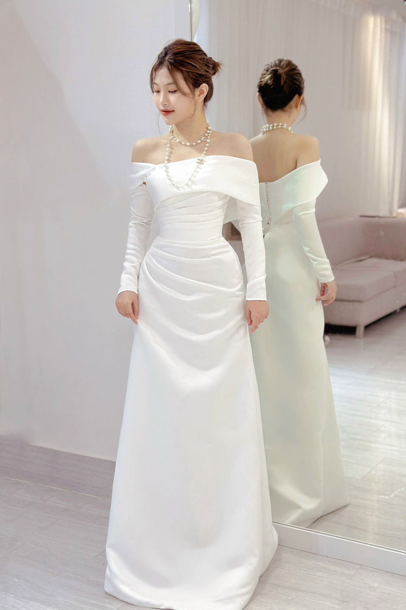 Váy cưới dài tay màu trắng thanh lịch
