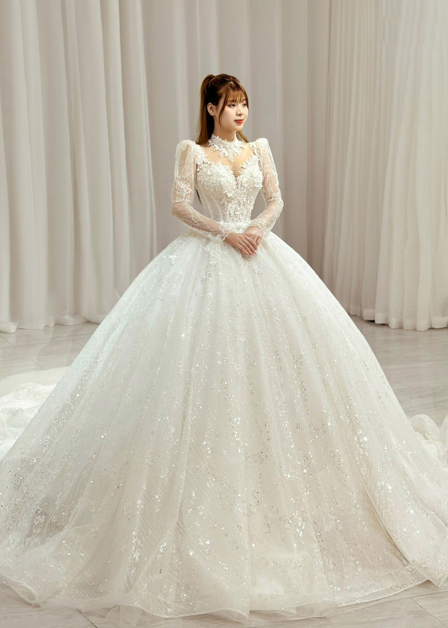 Váy cưới dài tay là “chân ái” cho các nàng dâu có khuyết điểm bắp tay to. Ngoài ra, với các nàng dâu yêu thích vẻ đẹp nhã nhặn, kín đáo thì đây quả thật là lựa chọn số 1 luôn đó.
